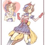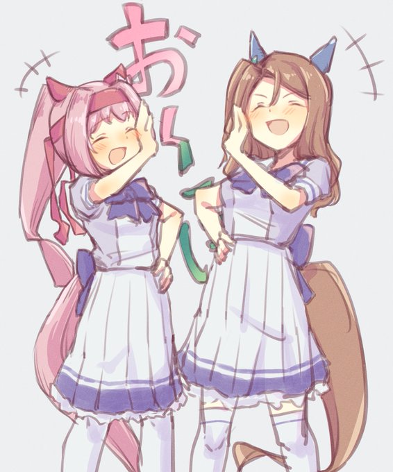 「こうかな?おーほーほー!」 「一流はこうよ!手は撫で切るように、声は高らかに!」 #ハルウララ #キングヘイロー #ウマ娘