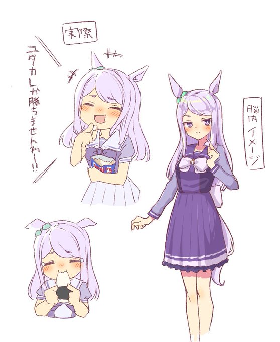 77 195 「こうかな?おーほーほー!」 「一流はこうよ!手は撫で切るように、声は高らかに!」 #ハルウララ #キングヘイロー #ウマ娘 22/12/17 12:25