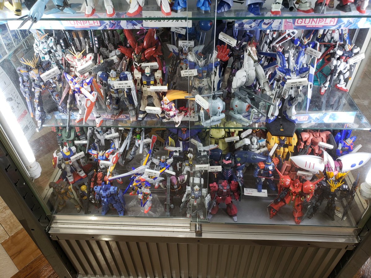 ギャラリー整理してたら懐かしい写真がありました! このお店は今はもう無いんですけどね😭 ガンプラ買いに行ってたな〜🥺 ガンプラ達が自分の番号持ってます🫡 なんかシュールですよね😁 #ガンプラ #ガンプラの画像を貼るとRTされると聞いて