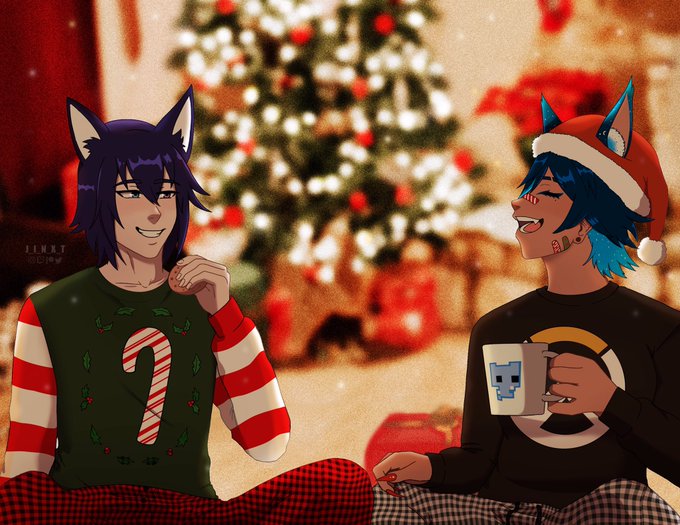 A nice comfy night opening Christmas present UwU 🎁 I had so much fun working on this commission for @TheFluffyHusky_ #Commission #vtuber #envtuber #VTuberUprising #digitalart #artistsontwitter