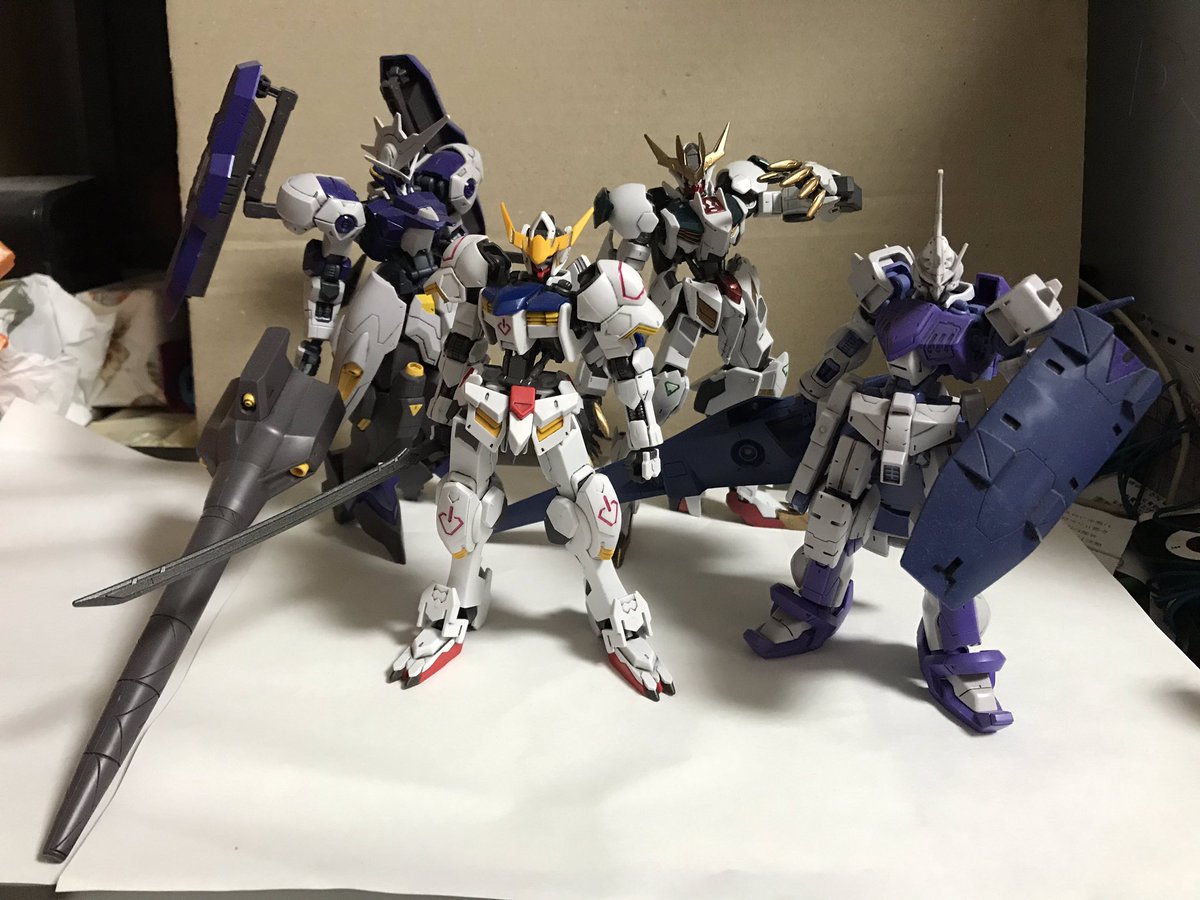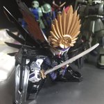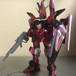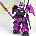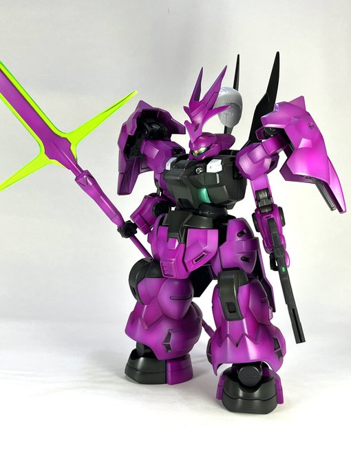 本日の一台、 HG「ディランザ(グエル専用機)」 槍が長いので写真から切れているけど、 でかい武器は素晴らしい。 いつものグラデーション塗装を中心に全体塗装。 羽飾りはパール+ツヤ塗装。 あとはツノ尖らせてる位で。 #gundam #ガンプラ好きな人と繋がりたい #水星の魔女