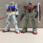 本日の一台、 HGUC『ガンダムNT-1 アレックス』 いつも通りの、ツノ尖らせて、 グラデーション塗装。 バーニィのザクと並べて、 どちらも劇中では出てこない手持ち銃持たせてみる。 エントリーグレードのガンダムと並べると、対比が楽しい。 #gundam #0080ポケットの中の戦争 #ガンプラ
