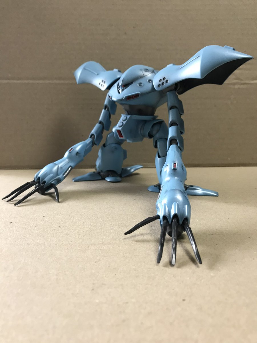 本日の一台。HGUC「ズゴックE」 0080のズゴック。 濃いグレー部分はパールを軽く吹いてテラテラ感に。 上腕や腿が普通のズゴックに比べると複雑なデザインで、背骨みたいに見える。 それもあってか、怪物感が増してる気がして、 好きなデザイン。 #gundam #ガンプラ #ポケットの中の戦争