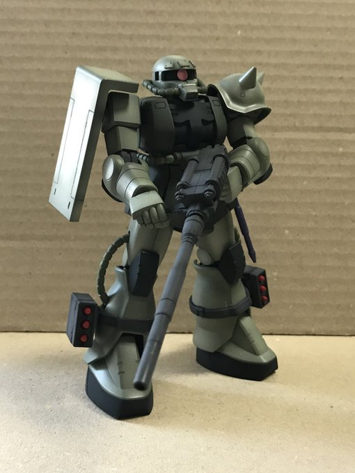 本日の一台。 HGUC『ザクⅡ改』 モノアイをレンズパーツにして、 肩のスパイクを尖らせて、 あとはいつものグラデーション塗装。 ザクⅡや、0083のザクと並べても楽しい。 #gundam #ガンプラ #ポケットの中の戦争 #嘘だと言ってよバーニィ