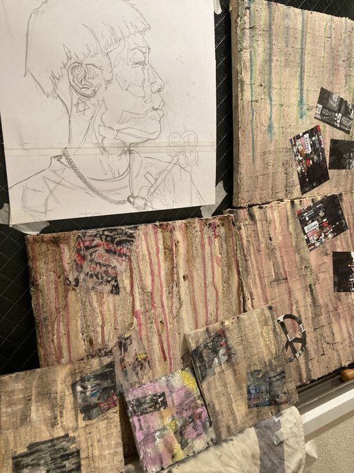 #ゴールデンウィークSNS展覧会2023 壁をモチーフにした作品ばっかり作ってます アーティストの似顔絵を彫り込む 「似顔“壁”」も作っています。 #絵かきさんと繋がりたい #絵描きさんフォロバ100
