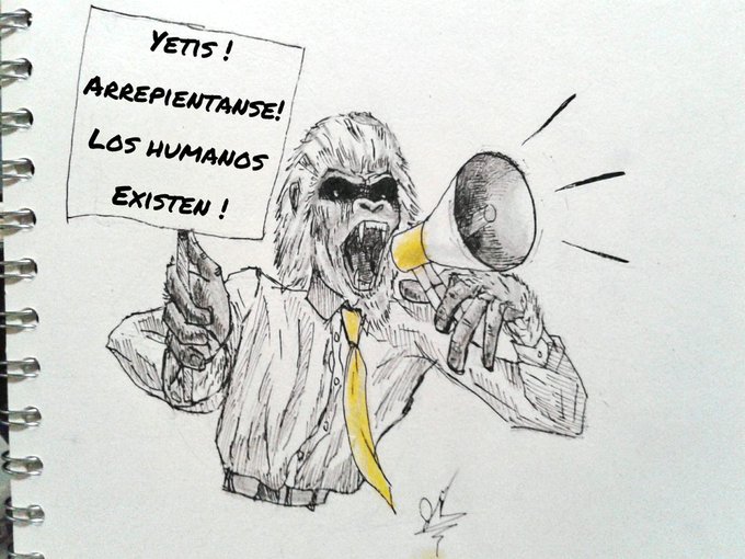 Inktober 52 semana 50 Yeti In a world inhabited by Yetis there are also religious fanatics who assure the existence of some mythological being called human but demonized as rock due to misinformation #inktober #inktober2020 #inktober52 #inktoberyeti