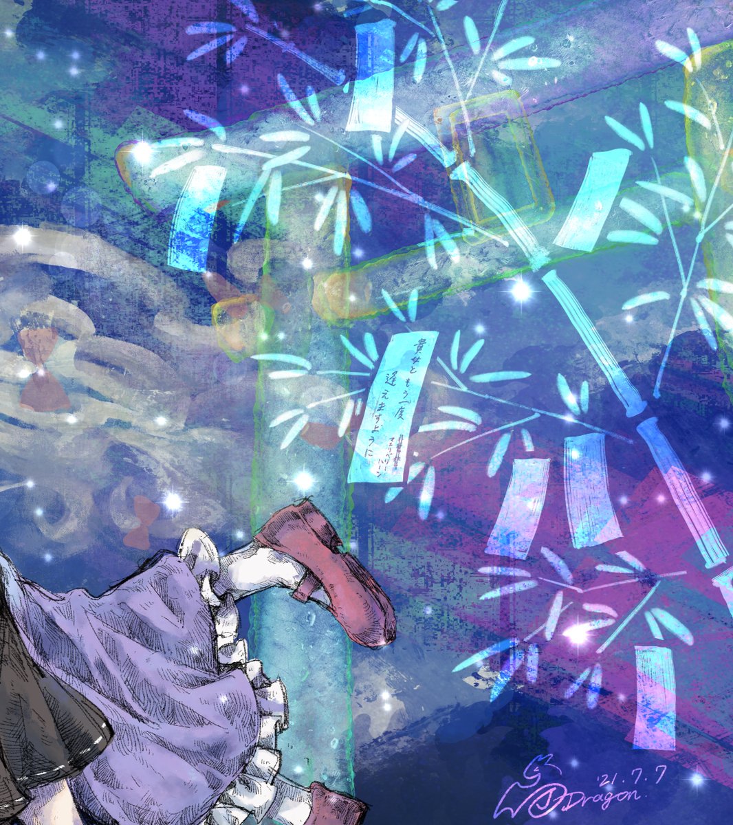 分割する前の七夕秘封絵もあげておきます🎋 #7月7日 #秘封366 twitter.com/J_dragon_12/st…