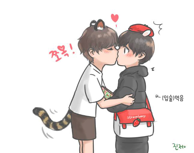 뽀뽀쟁이~😚💜 #뷔진 #taejin