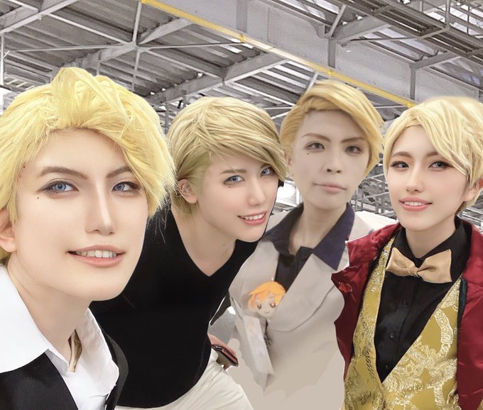 【コスプレ】 左からLiA、私服、オバキル、100話の🦁さん四人が揃いましたよ〜〜〜〜〜!!!!! (合成)(四人の🦁レイヤーで衣装違いでいたのは事実)(問題があれば消します)