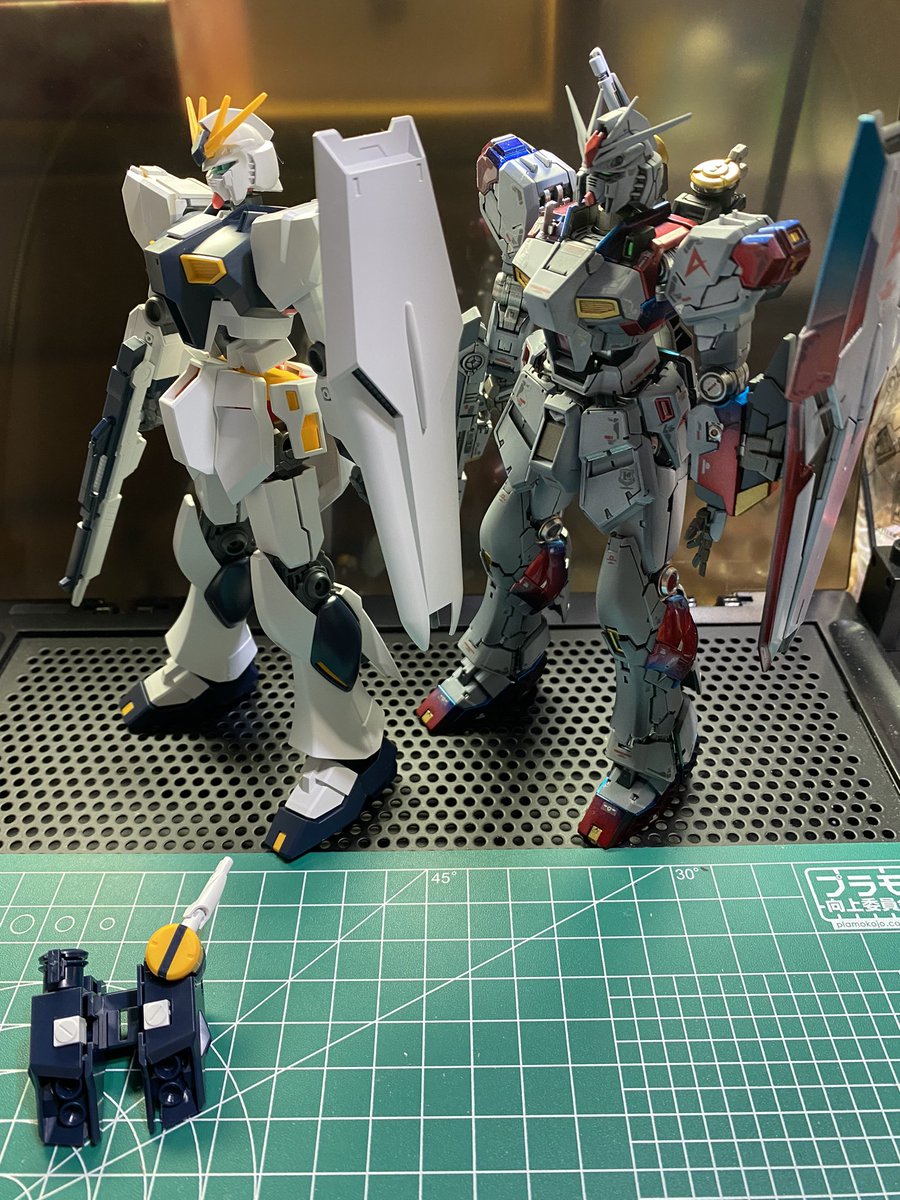 EG.νガンダム仮組み終了! 明日からスジ彫りとディテールアップに入ります。 2枚目はRG.νガンダムとの2ショットのつもりでしたが、オリジナルカラーのためよく分からん状況に😅 #ガンプラ好きと繋がりたい #ガンプラ #ガンプラの画像を貼るとRTされると聞いて