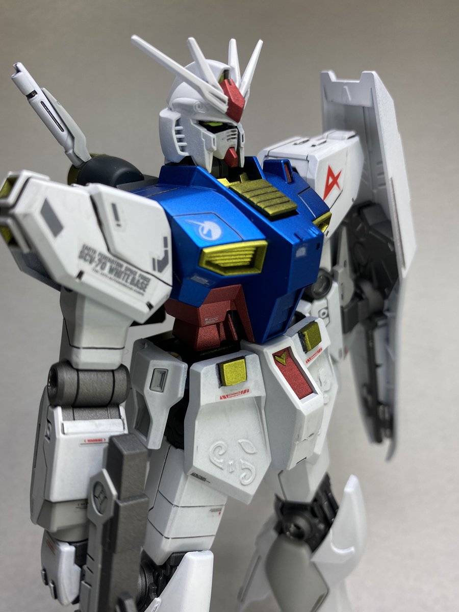RX-78F00ガンダム 完成しました。 サフでディテールが埋まるのを恐れて今回は白部分はパール系カラー部分は各種クリア塗料で仕上げました。 サイズはHGなのによく動くので驚きました。 #ガンプラ好きと繋がりたい #ガンプラの画像を貼るとRTされると聞いて #ガンプラ