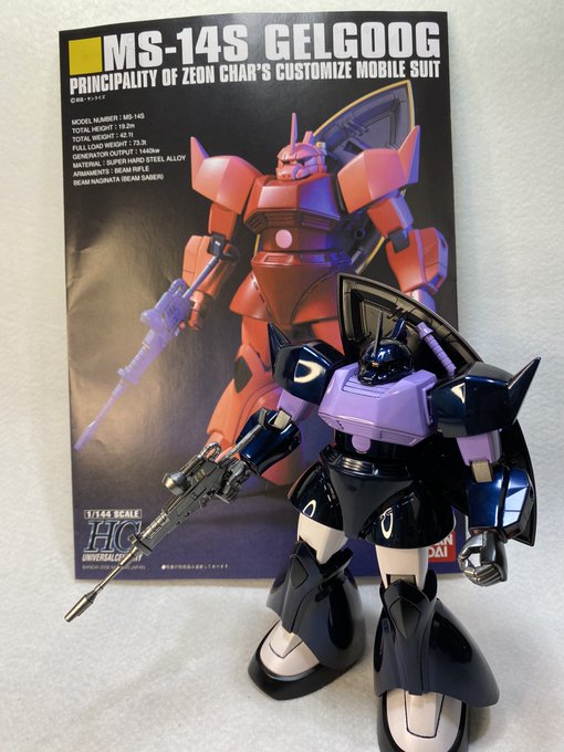 プリズムブルーブラックで三連星用ゲルググを作りました。 クリアの重ね塗りのせいで写真が上手く撮れませんでした。笑 #ガンプラ好きと繋がりたい #ガンプラの画像を貼るとRTされると聞いて #ガンプラ