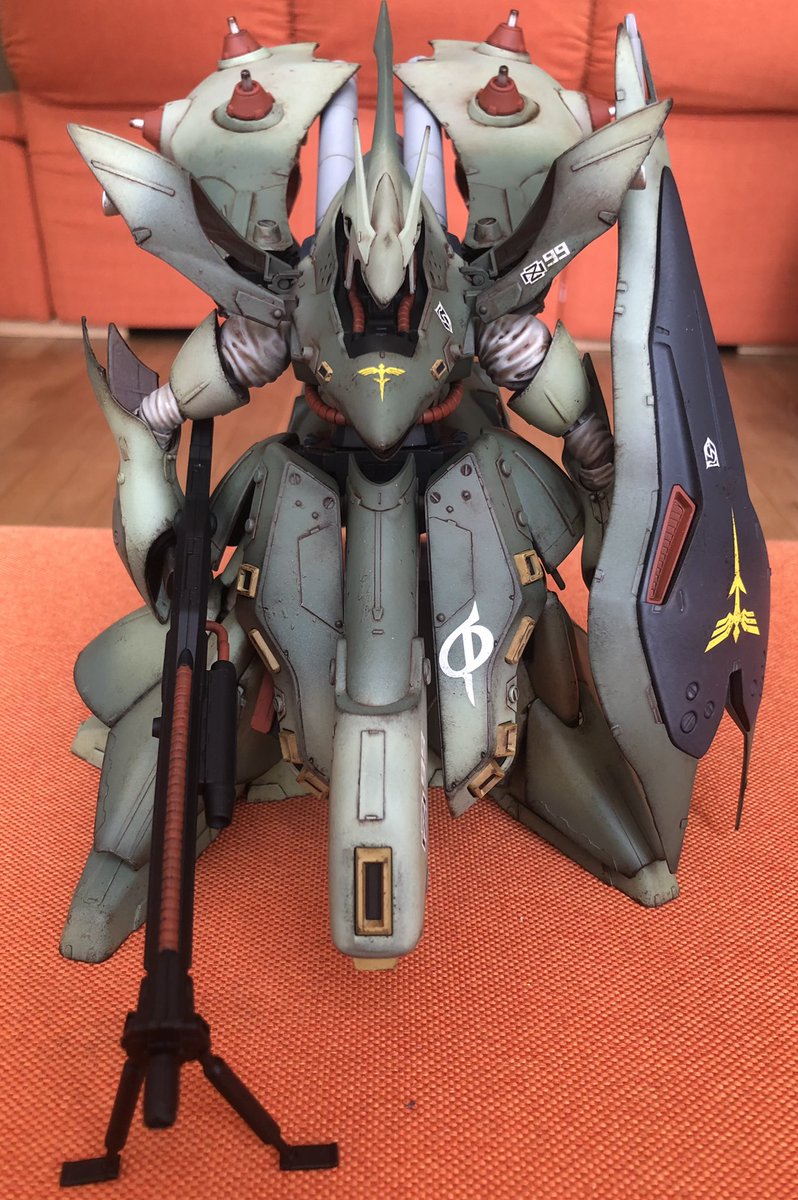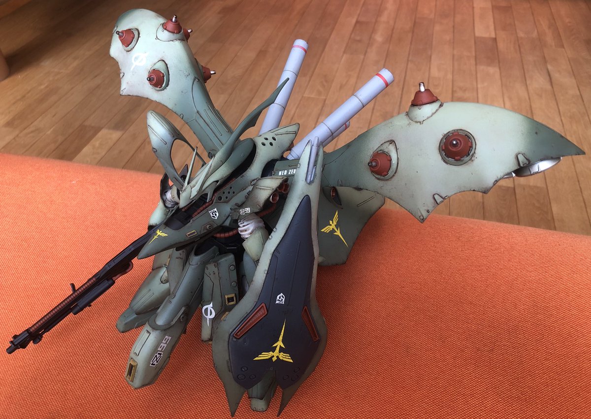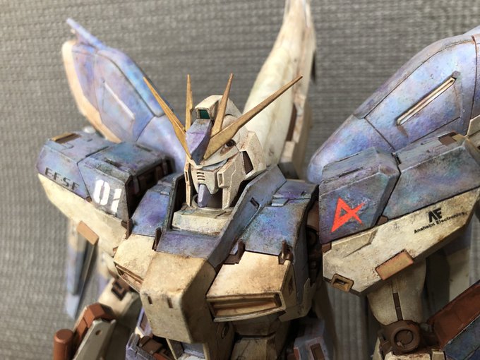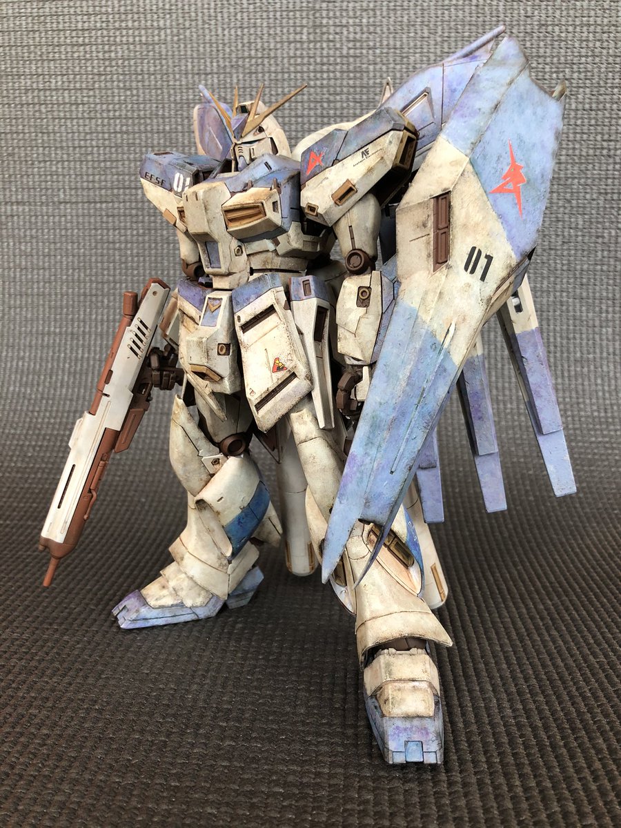 MGハイニューガンダム完成。元はリサイクルショップの¥2000のジャンク品。ペタペタ筆塗りして紫は良い具合に出来ました。汚しは楽しくてやめ時がわからなくなりますね。 #ガンプラ好きと繋がりたい #ガンプラの画像貼るとRTされると聞いて #ガンプラ #ハイニューガンダム