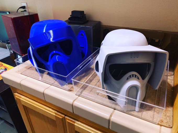 Some in progress prints, I’m sure you could probably recognize what they are. . . . . . . . . . #starwars #cosplay #3dprinting #3dprinted #3Dprinter #smallbusiness