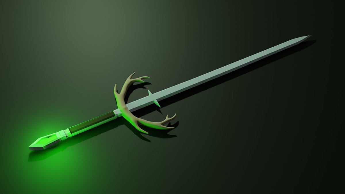This is for the 18th of #Swordtember / #swordtember2020 for "nature inspired." Called "The Green King" "Be quiet, be quick and you must tread light, for the Green King hunts these woods at night..." I imagine he's a tall brooding fellow with antlers and flowers #b3d #lowpoly