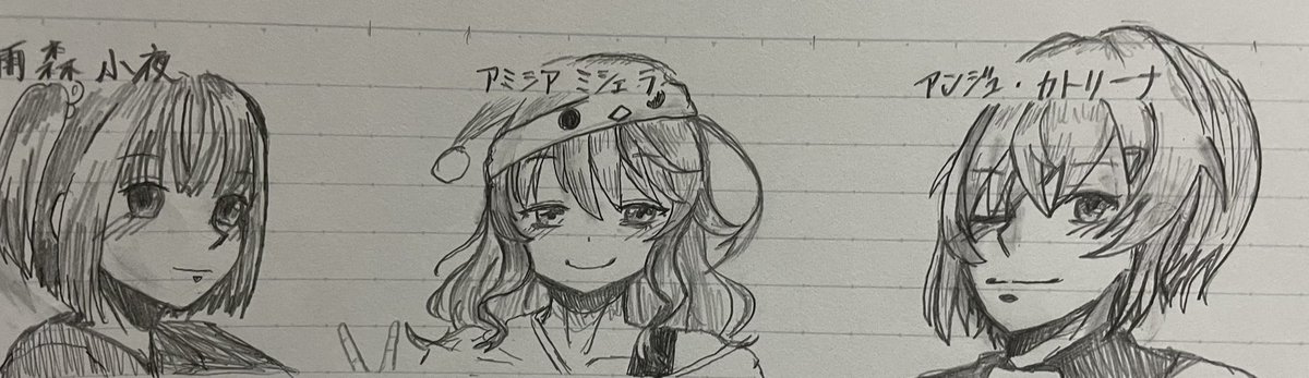 #にじさんじ五十音順に描いたら童田明治の時には画力上がってる説 #ういはぁーと #愛美術館 #赤羽絵葉書 #Ray_art #むにゃーと #絵こころ アナログで学校の暇な時間で書いたけど難しい…………全員初描き あと何人いるんだ100は書かなきゃ……