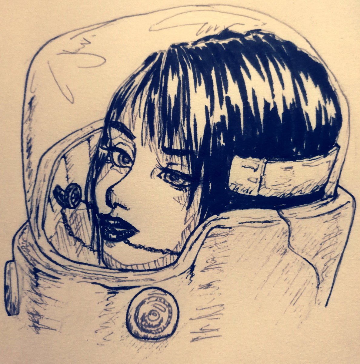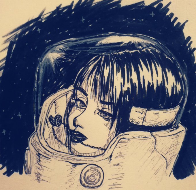 First day of #inktober! It's Rinoa, when she's floating in space, and manages to hang on when Squalls ring floats before her gaze :> #traditionalart #myart #finalfantasy