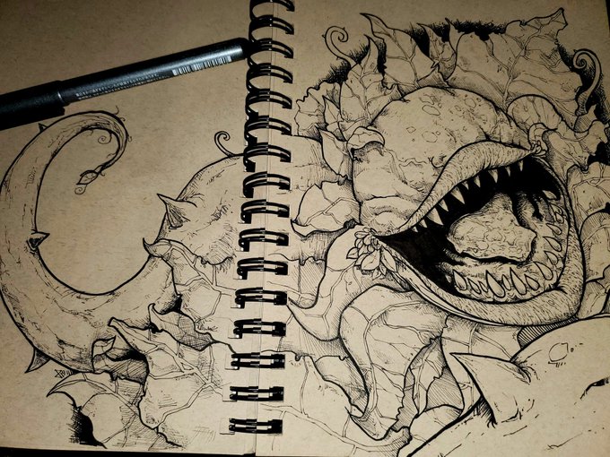 Feed me! #inktober day 14! Overgrown | #Inktoberday14 #Inktober2019 #inkdrawing #ink #audreyii #littleshopofhorrors #drawing #art @inktober
