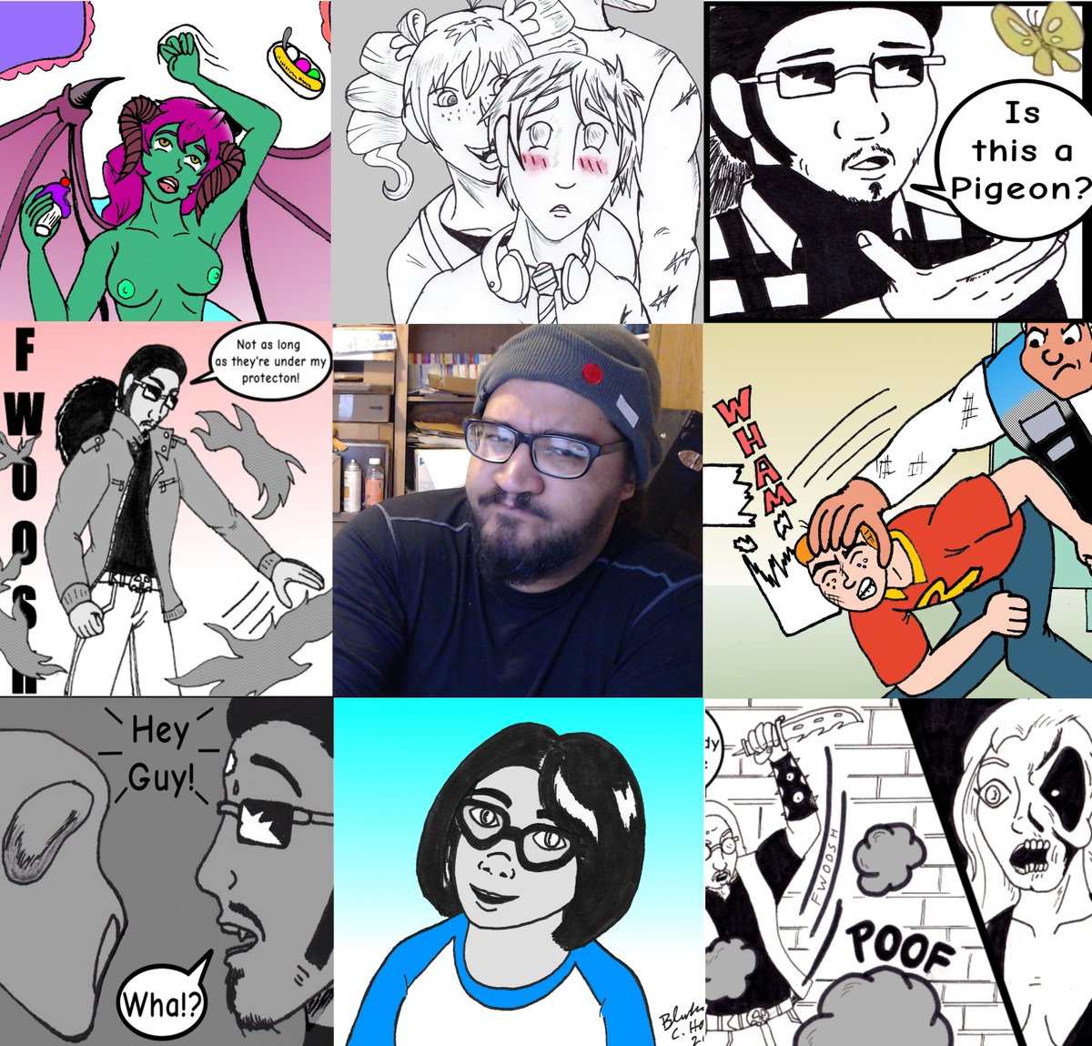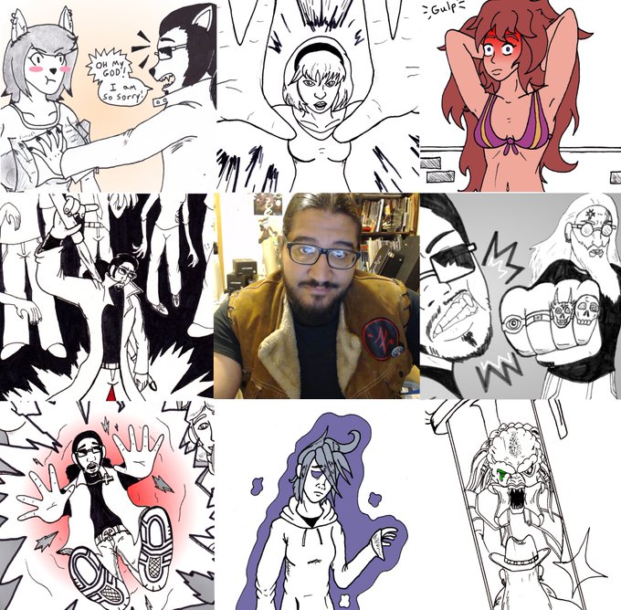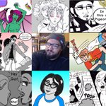 #artvsartist is goin around! Since finishing my #webcomic I've had downtime(until I start the next one) & have gotten to do more fan art! In this pic I've got #fanart for the ever talented @StarSumiaki, @AnArtistsVoice, & @theycallhimcake along with my own #OC's! #artvsartist2019