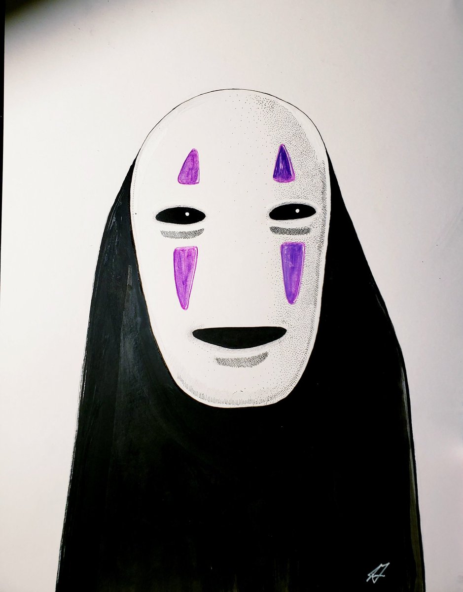Day 15 - Kaonashi from Spirited Away. Acrylic, watercolor & ink on 11 x 14 bristol board. #inktober #StudioGhibli #spiritedaway