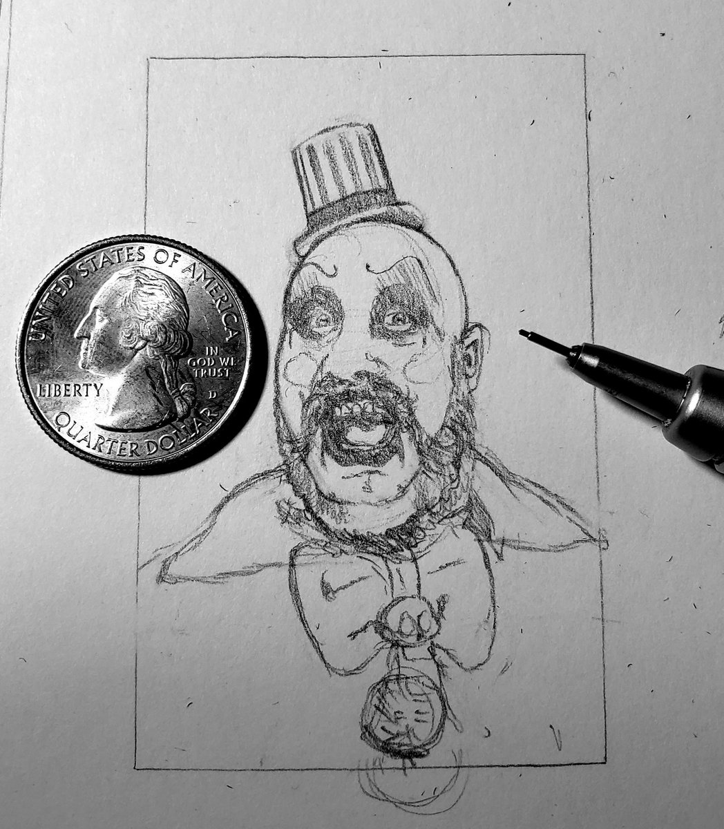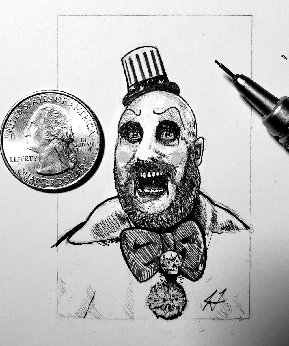 "Why don't you just take your Mama home some chicken & then I won't have to stuff my boot all up in ya' ass!" Day 19✍ #inktober #thedevilsrejects #captainspaulding @RobZombie #halloween #Horror
