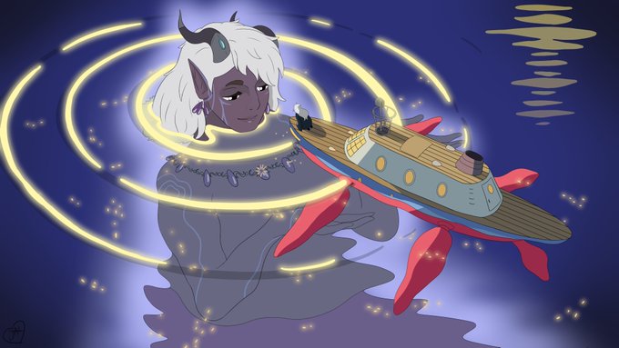 have some more Ponyo au Ethari bc I’m literally obsessed with how pretty he is in the Ghibli style (featuring tiny Runaan lol) #tdp #TheDragonPrince #Ethari #ghibliredraw #PonyoAU #tdpart #fanart