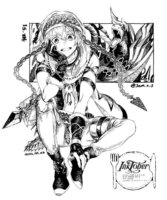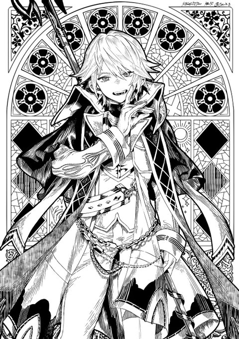 #メギド72ファンアート展 ファンア展も13回⁉︎ですが初めての〆チケはアロケル君だったな🤔と思いアロケル君を描きました バトルモーションの 棒立ち予備動作無〜斬込み の一連の動作に人外みを感じて大喜びで喚んだのが昨日のよう そして先日はパジャマ衣装を有難う御座いました(アロケルの祖母面