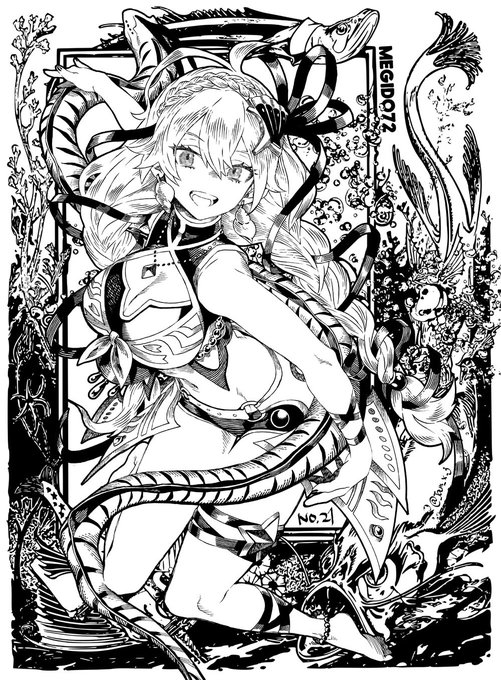 唯のファンだけど、ブネ、カウントダウンイラスト流してもいいか⁉︎(聞かれても困るだろブネも) 暑いので、本人は夏ログボで全身の血が沸騰しそう無理的な事言ってたけど、触ったらお肌ひんやりしてそうなアクイェルくん描きました メギドの日おメギド🤗 #メギドの日展_イラスト部門