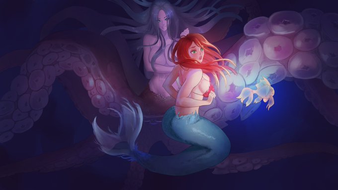 Only Thing Worse Than Being All Alone In Dark Waters? Realizing You Aren't... I Have Enjoyed Imagining These Commission Scenes Of Mermaid @byndogehk This Hauntingly Beautiful Piece Is Thanks To @ImpalingP, Who Has Nailed It Again! Pose Reference: @JookPub #FanArtFriday #mermay