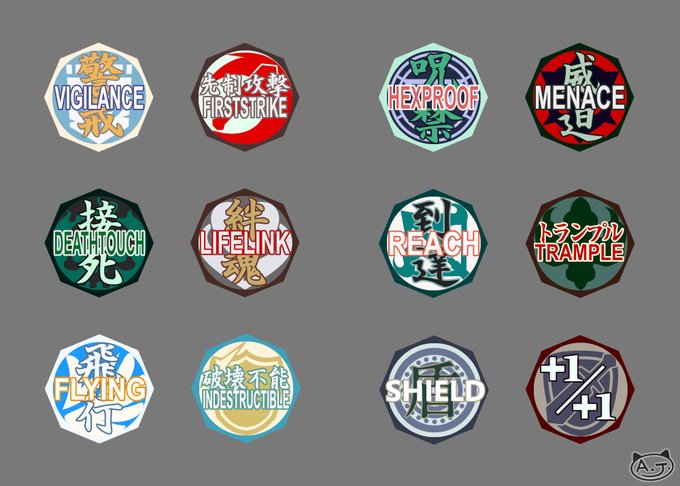 過去絵の再投稿♪ イコリアでは多数のキーワード・カウンターが使われたので、それっぽいデザインを作りました。その後、破壊不能カウンターや盾カウンターを追加して12種類に増えました😆 カラー版の他にモノクロ版も一緒に投稿しておきます。 #MTG #mtgfanart #magicthegathering #KeywordCounter