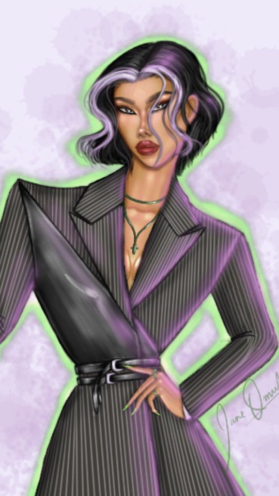 Cheers to the weekend!💜✨ Day 1: Crystal #Inktober , but in ✨colour✨ #inktober2021 Jane Omukoro. 2021. #FashionWeek #fashionillustrator #fashionillustration #friday #inktober2021day1 #inktober2021crystal