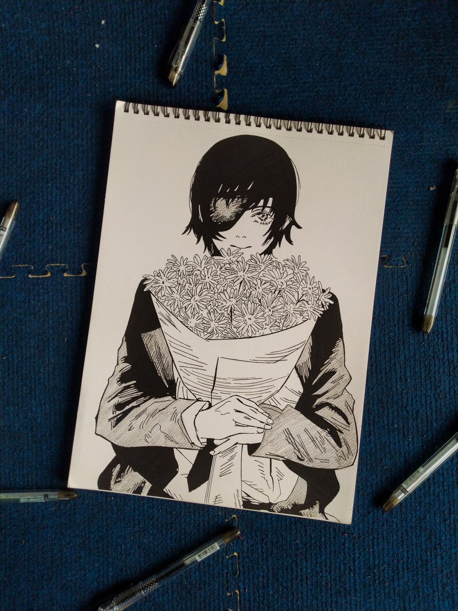 DAY 6 | BOUQUET HIMENO (CHAINSAWMAN) - Dong-a mygel pens , on canson watercolor sketchpad #inktober #inktoberchallenge #inktoberday6 #inktober2022