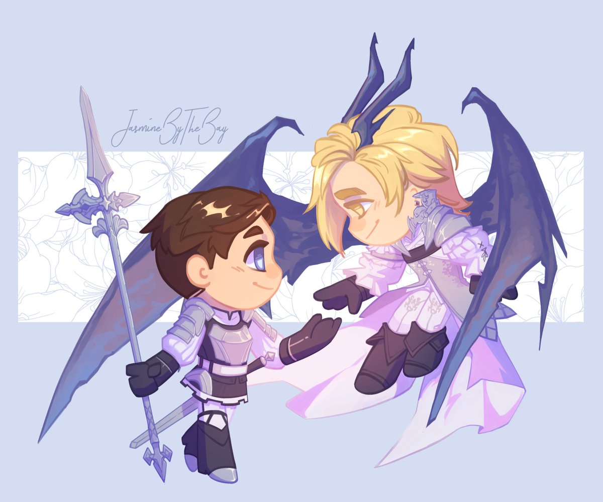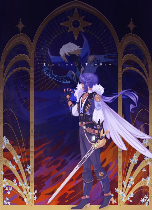the dainsleif and kaeya pinup stickers I designed a while back for @vaporisepinup hehe #genshinimpact