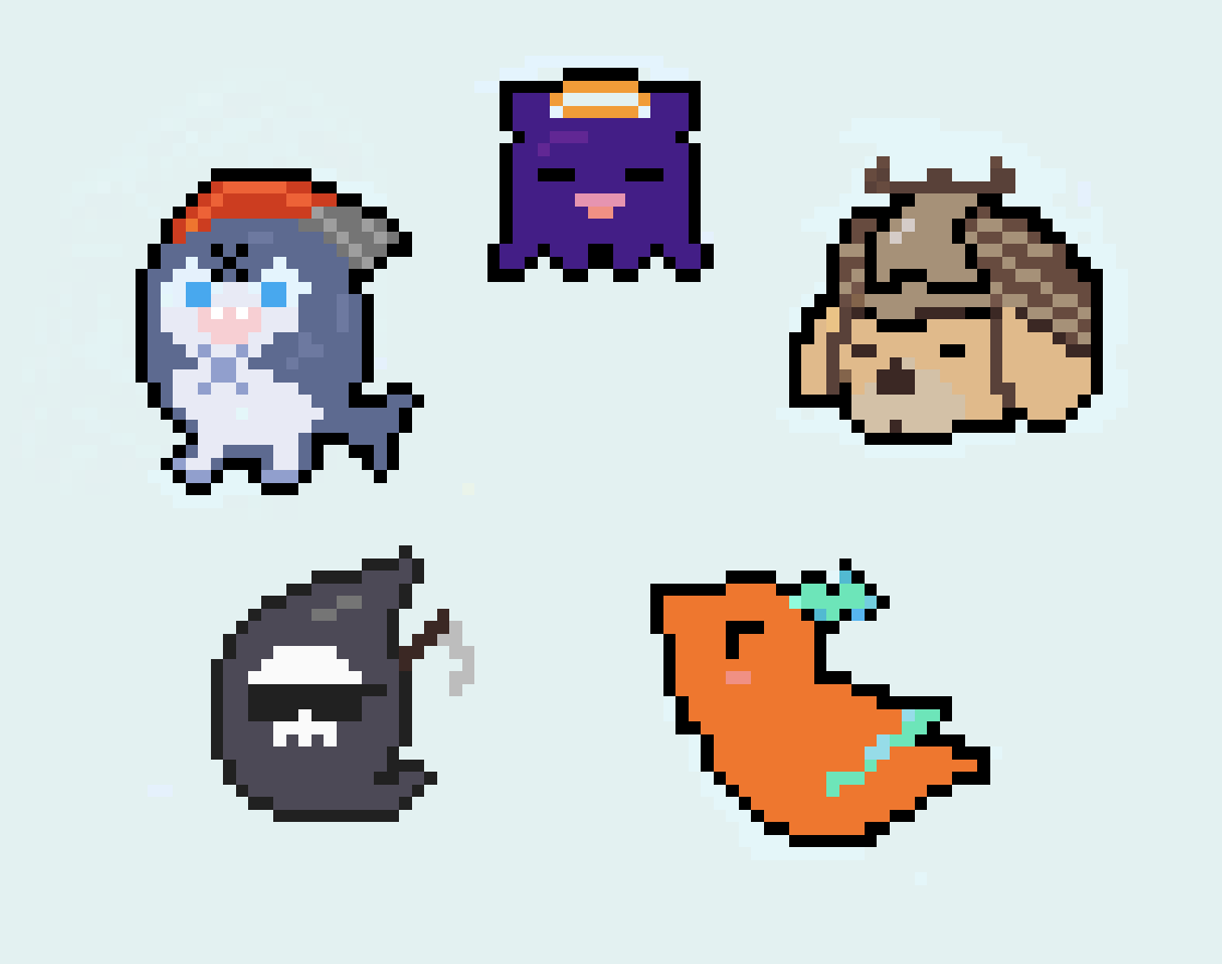 Pixel HoloEN mascots. Second Pixel arts I have done. Since my school semester has started I won't upload as often as I intended but I promise the next one will be a "BEG" one. #Hololive #callillust #ArtsofAshes #inART #gawrt #ameliaRT #pixelart