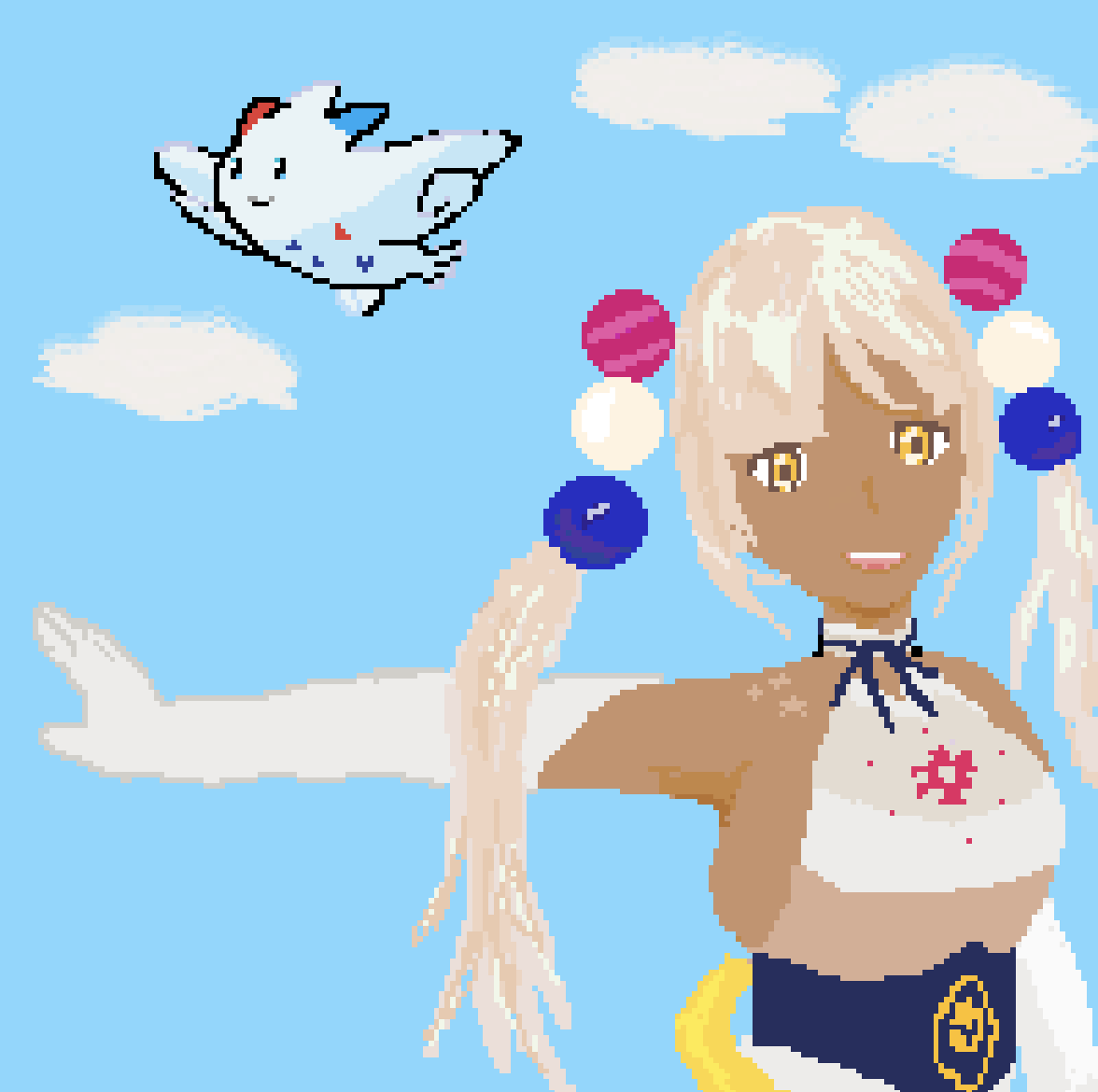 You are challenged by Pokemon champion Tsukumo Sana. Finally finish after a whole week of procrastination. I might draw more Pokemon and Hololive crossover next time. #pixelart #hololiveEN #galaxillust #Pokemon