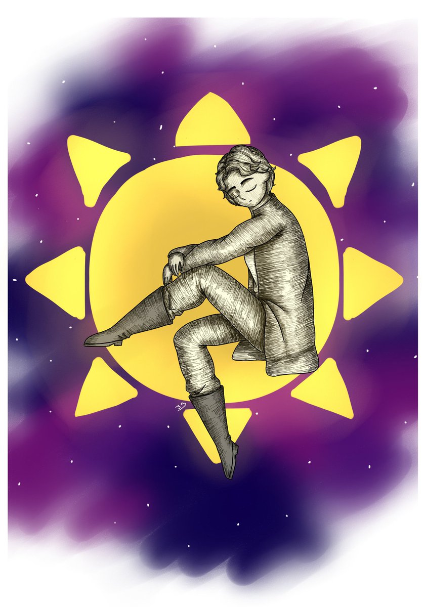 Día 2: Sol Para este día quise usar a Sol, mi oc de humanización del sol, me gustó mucho así que creo que lo pintaré más adelante #Inktober #inktober2021 #jsugartober