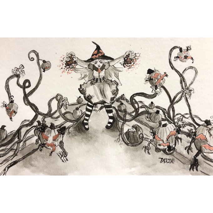 Day 7. Enchantment. #inktoberDay7 #Inktober #inktober2019 #ink #Enchanted #inkart #traditionalart #witch #pumpkin