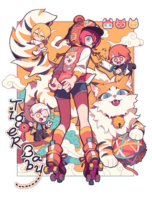 #RollingRoutine Tiger Baby! oc:Vinkiki / Detector Akial / Geraldine Rhine / Yuri Akial #illustration #oc #originalcharacter #絵描きさんと繋がりたい