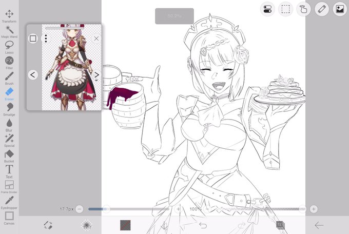 1 2 WIP 2- The Lineart is finally done!! #Genshin_Impact #genshinimpactfanart #Noelle #Noelle_birthday 23/03/22 09:10