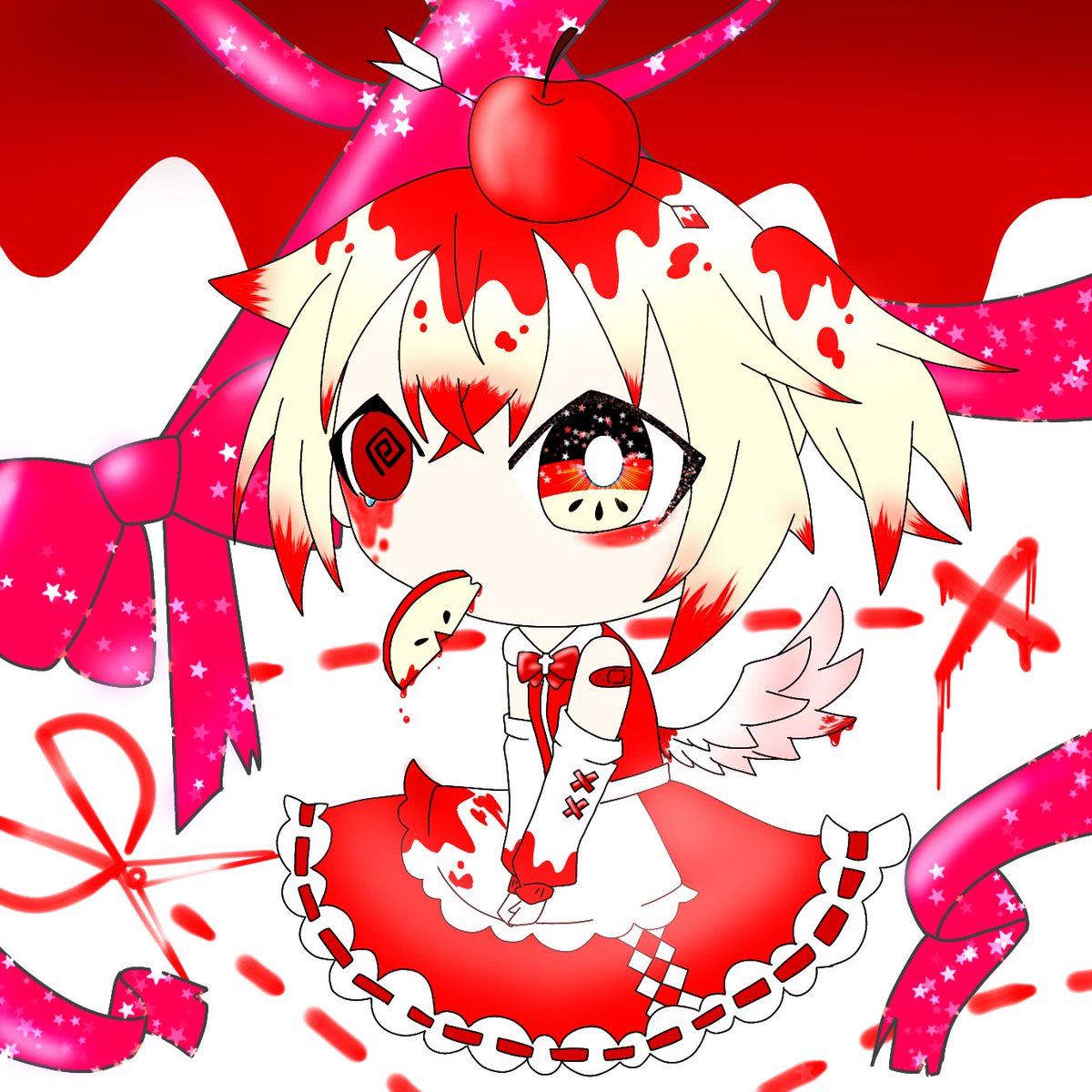 2 9 友達と果物テーマ1色縛りお絵描きしてました。俺は林檎です。 #イラスト #オリジナルキャラクター #林檎 #アナログイラスト #コピックイラスト 22/06/05 21:20