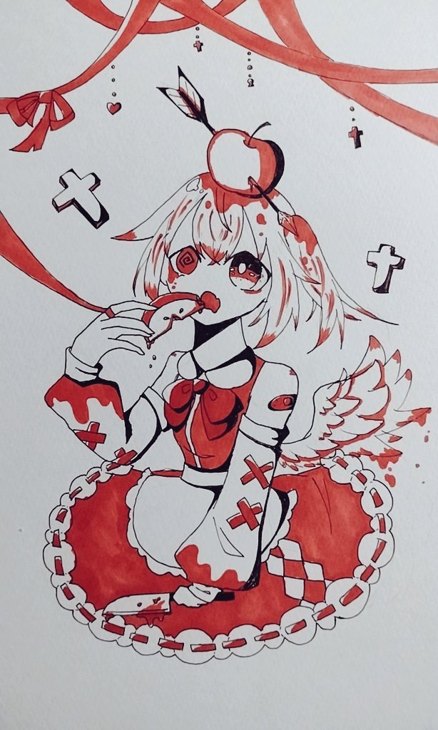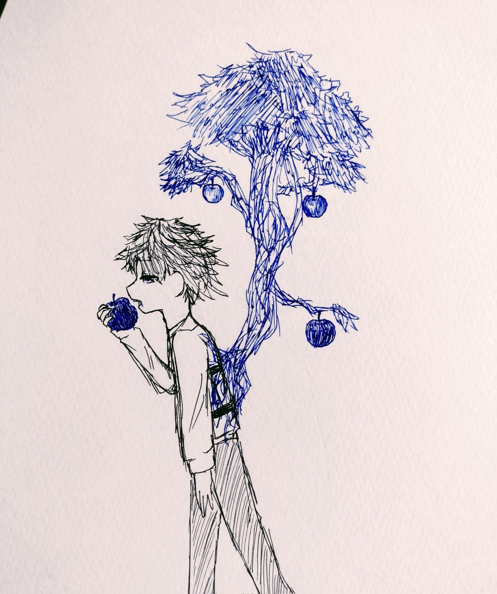 友達と果物テーマ1色縛りお絵描きしてました。俺は林檎です。 #イラスト #オリジナルキャラクター #林檎 #アナログイラスト #コピックイラスト