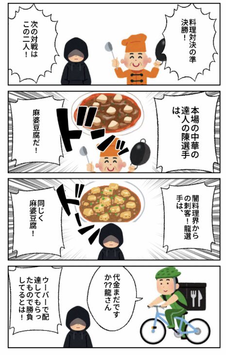 タイトル:料理対決 #4コマ #4コマ漫画 #漫画 #マンガ #ものシリーズ #漫画が読めるハッシュタグ #ペイペイワールド