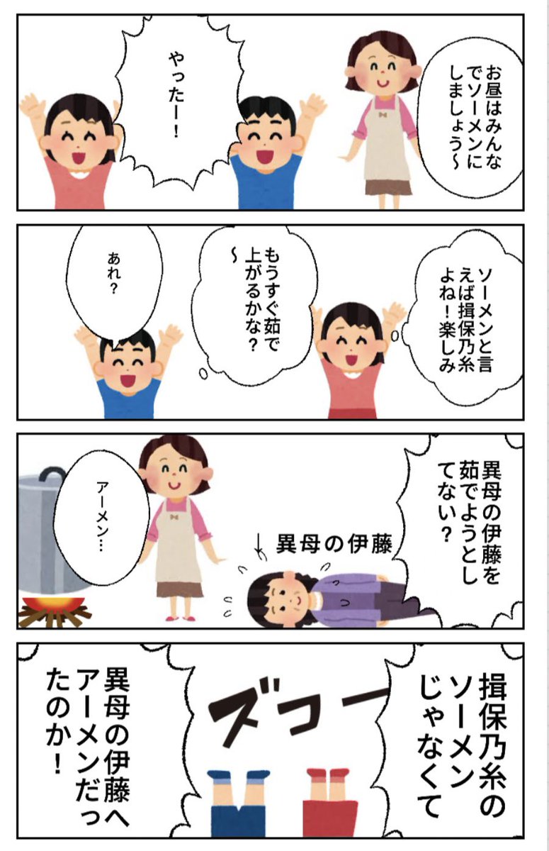 タイトル: ソーメンやっぱり揖保乃糸 #4コマ #4コマ漫画 #四コマ漫画 #漫画 #マンガ #ものシリーズ #漫画が読めるハッシュタグ #ペイペイワールド