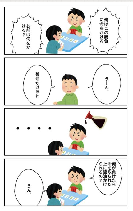 タイトル:命を賭けた戦い #4コマ #4コマ漫画 #四コマ漫画 #四コマ #漫画 #マンガ #ものシリーズ #漫画が読めるハッシュタグ #ペイペイワールド