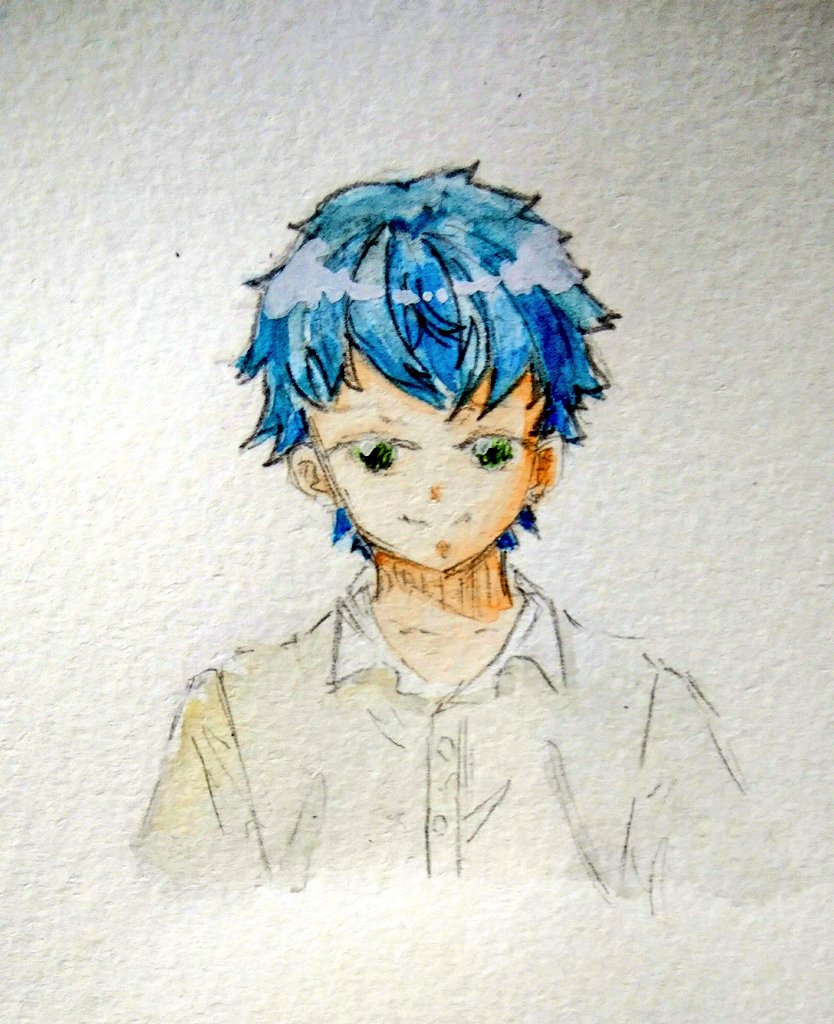 なんかおかしい( ^o^)髪の毛浮いてるし頭の形もおかしーい! #創作イラスト #男の子 #イラスト #水彩画