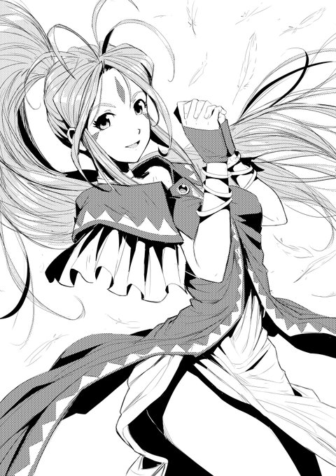 Still playing arround with the screen tones xD. Here's my entry for day 6 of the #Inktober challenge, Belldandy from Oh my goddess. #inktober2022 #ohmygoddess