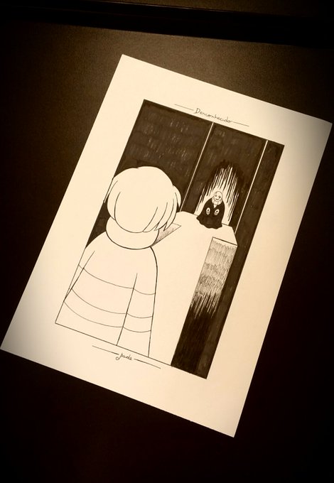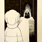 #Pushtober day 11: Unknown *The monster looming at the end of the corridor leaves you uneasy. *You've never seen it before, but it seems it knows you very well. *It smiles. *Will you go there? ♡ Yes Leave #Pushtober2019 #Inktober2019 #Inktoberday11
