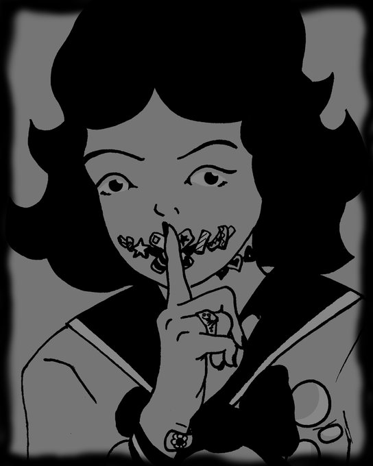 Vicetober Day 12: Muffled Hush now #inktober #inktober2022 #vicetober #vicetober2022 #artchallenge #creepyart #instaart #ArtistOnTwitter #blackandwhite