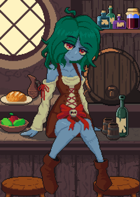 || Zombie Tavern Maid || OC made from a request! If there was ever an anime about this i'd call it "The Tavern Maid who is a Zombie cannot be this Cute!" #pixelartist #aseprite #ドット絵 #illustration #oc #zombie #characterdesign