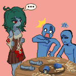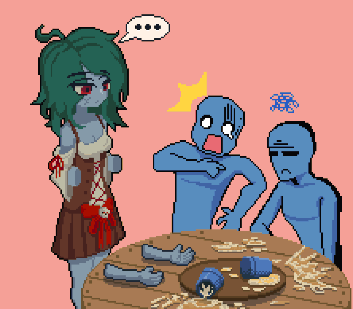 || Tavern Mishap || Just an extension of the character, Zombie Tavern Maid. I thought it'd look funny in my head so I decided to doodle it out for better clarity of her persona. #pixelartist #aseprite #pixelart #ドット絵 #illustration #comic #characterdesign